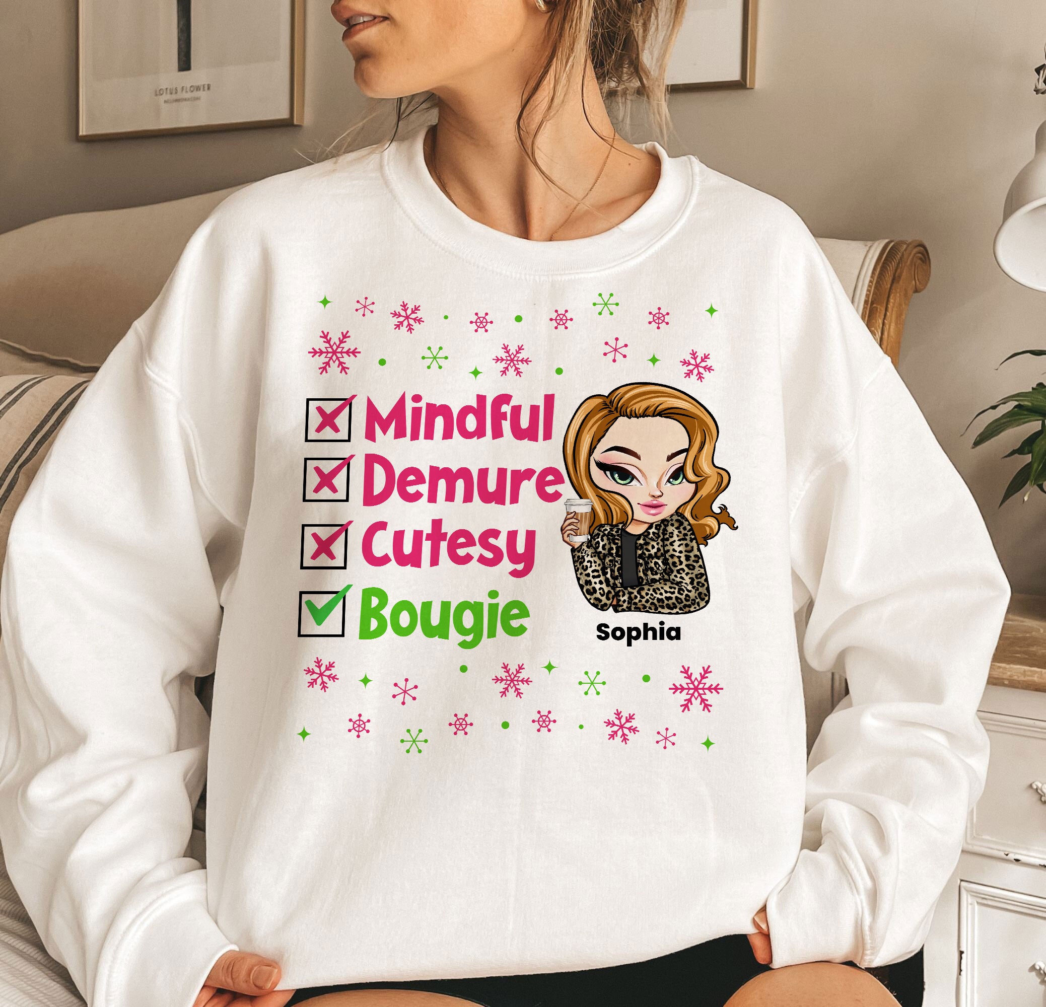 Christmas Sweatshirt Mindful Demure Cutesy Bougie – Personalized Sweatshirt