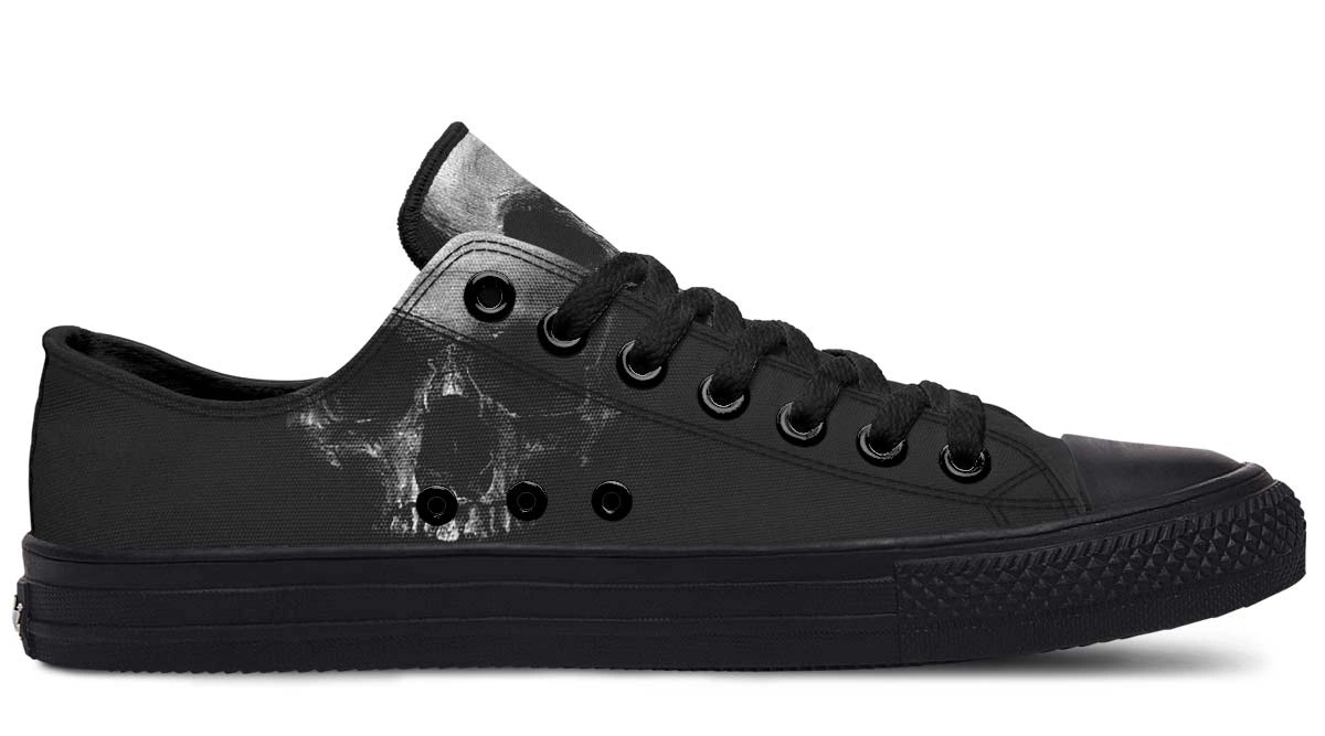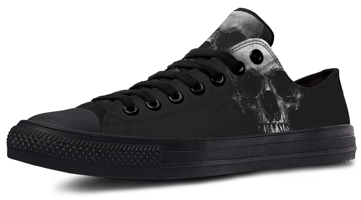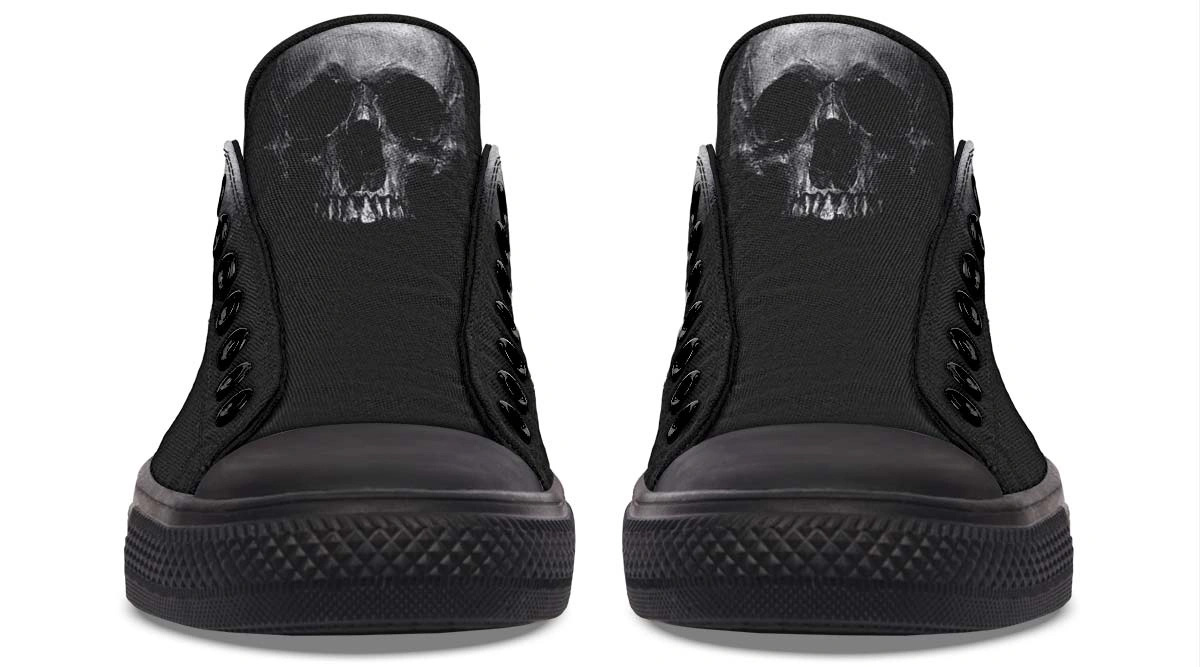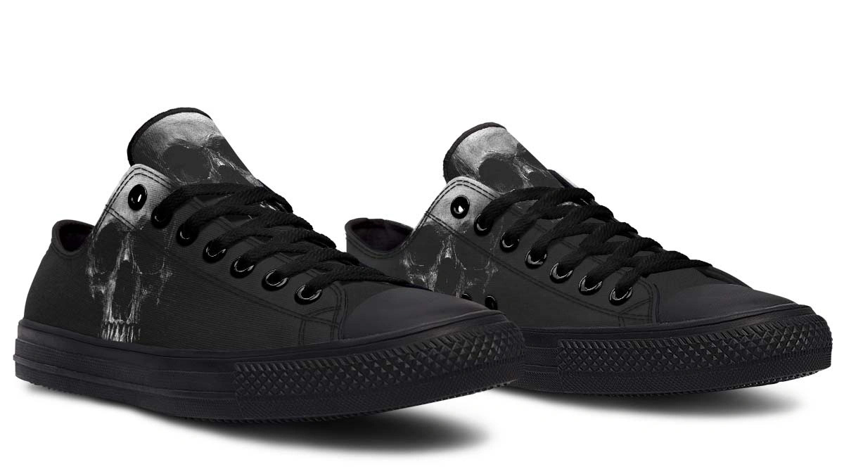 Elevate your footwear rotation with the Just a Skull Black Low-Top Sneakers. For those who appreciate bold yet understated fashion, these sneakers feature a sleek black canvas highlighted by a subtle, artistic skull motif. Designed for the modern urbanite, they offer a snug, supportive fit and high-performance durability for everyday wear. Whether you are pairing them with distressed denim or sleek joggers, these minimalist gothic sneakers provide a sharp, clean look with a touch of edge. Experience the perfect blend of subculture style and premium comfort with every step you take.