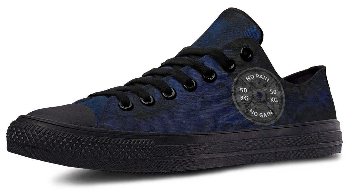 No Pain No Gain Blue Pattern Black Low-Top Gym Sneakers